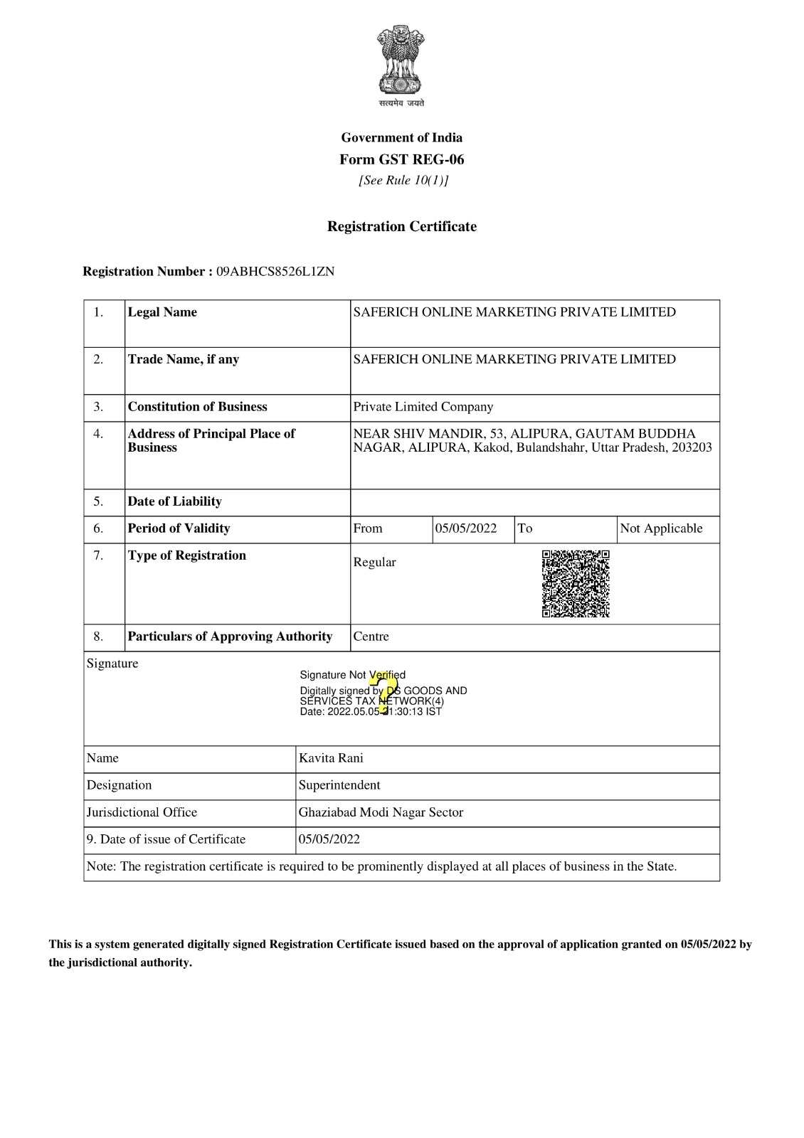 Legal Certificate