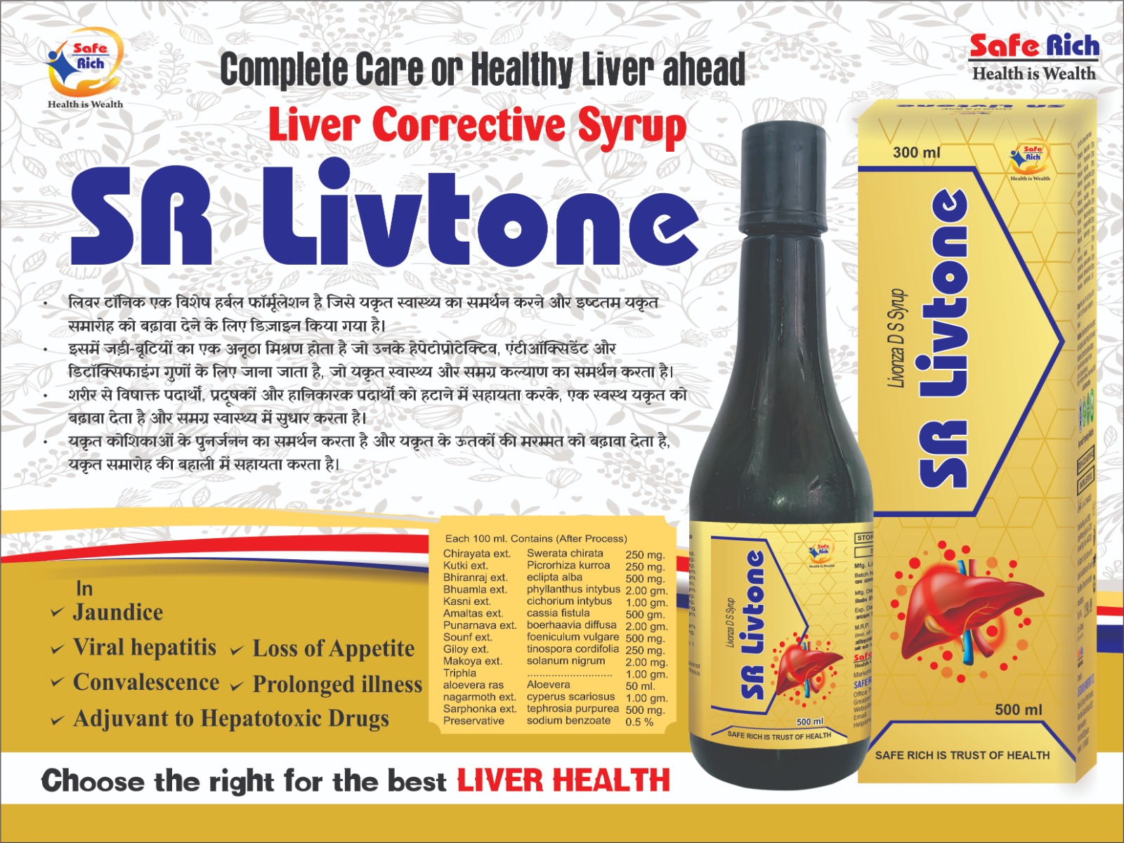 SR Livtone is a powerful herbal liver tonic formulated to provide complete care for your liver. It is specially designed to support optimal liver function and improve overall liver health. Packed with a unique blend of herbs renowned for their hepatoprotective, antioxidant, and detoxifying properties, SR Livtone works to enhance liver health, cleanse toxins, and rejuvenate liver cells. Whether youre looking to recover from an illness, detoxify your body, or maintain healthy liver function, SR Livtone is the ideal solution. Key Benefits of SR Livtone: Promotes Liver Health: SR Livtone helps maintain the natural functioning of your liver, ensuring optimal detoxification and efficient toxin removal. By enhancing liver activity, it promotes better digestion and overall health. Restores Liver Function: The tonic aids in regenerating liver cells and tissues, promoting repair and restoration of liver health. This is particularly beneficial for individuals recovering from liver damage or conditions like jaundice or hepatitis. Detoxifies the Body: The herbs used in SR Livtone have natural detoxifying properties, helping to cleanse the liver and the entire body from harmful pollutants, chemicals, and toxins. This contributes to overall well-being and vitality. Supports Liver Regeneration: SR Livtone works at the cellular level, encouraging the regeneration of liver cells and the restoration of liver tissues damaged by diseases or toxins. This aids in the healing process and ensures long-term liver health. Useful in Treating Various Liver Conditions: SR Livtone is highly effective in supporting recovery and managing liver-related issues. Some of the key conditions where SR Livtone proves to be helpful include: 1. Jaundice: Jaundice is a condition where the liver is unable to effectively process bilirubin, causing the skin and eyes to turn yellow. SR Livtone helps detoxify the liver, reduces bilirubin levels, and promotes healing. 2. Viral Hepatitis: Hepatitis, especially viral hepatitis, can severely affect liver function. SR Livtone helps combat the virus and supports the liver in its recovery process by promoting regeneration of liver cells and tissues. 3. Loss of Appetite: A weakened liver can result in a loss of appetite and poor digestion. SR Livtone stimulates the liver and digestive system, encouraging better appetite and improving digestive health. 4. Convalescence: After prolonged illnesses or surgeries, the body needs extra support to recover. SR Livtone helps improve overall energy levels, promote better digestion, and aids in quicker recovery by enhancing liver function. 5. Prolonged Illness: Chronic conditions can weaken the liver, causing a decline in its ability to function properly. SR Livtone helps restore liver function, improve metabolism, and aid the body in recuperating from prolonged illness. 6. Adjuvant to Hepatotoxic Drugs: Some medications, especially long-term or strong treatments, can harm the liver. SR Livtone can act as a protective adjuvant, helping to minimize the adverse effects of hepatotoxic drugs while supporting liver regeneration and detoxification. Why Choose SR Livtone for Your Liver Health? SR Livtone stands out as a natural, safe, and effective solution for maintaining healthy liver function. Made with high-quality herbs, it works gently yet powerfully to support liver regeneration and detoxification. If you?re looking for a liver tonic that can help in the management of jaundice, hepatitis, loss of appetite, and general liver health, SR Livtone is the right choice for you. Whether you?re in Greater Noida or elsewhere, SR Livtone is available to support you on your journey to optimal liver health. By choosing SR Livtone, you can ensure that your liver gets the care it deserves, helping to enhance your overall well-being. Experience the Power of Nature with SR Livtone ? Your Natural Liver Care Solution By choosing SR Livtone, you are choosing a natural path to better liver health. Its carefully selected ingredients work synergistically to support liver detoxification, regeneration, and overall function. Make the smart choice for your liver health and start using SR Livtone today!