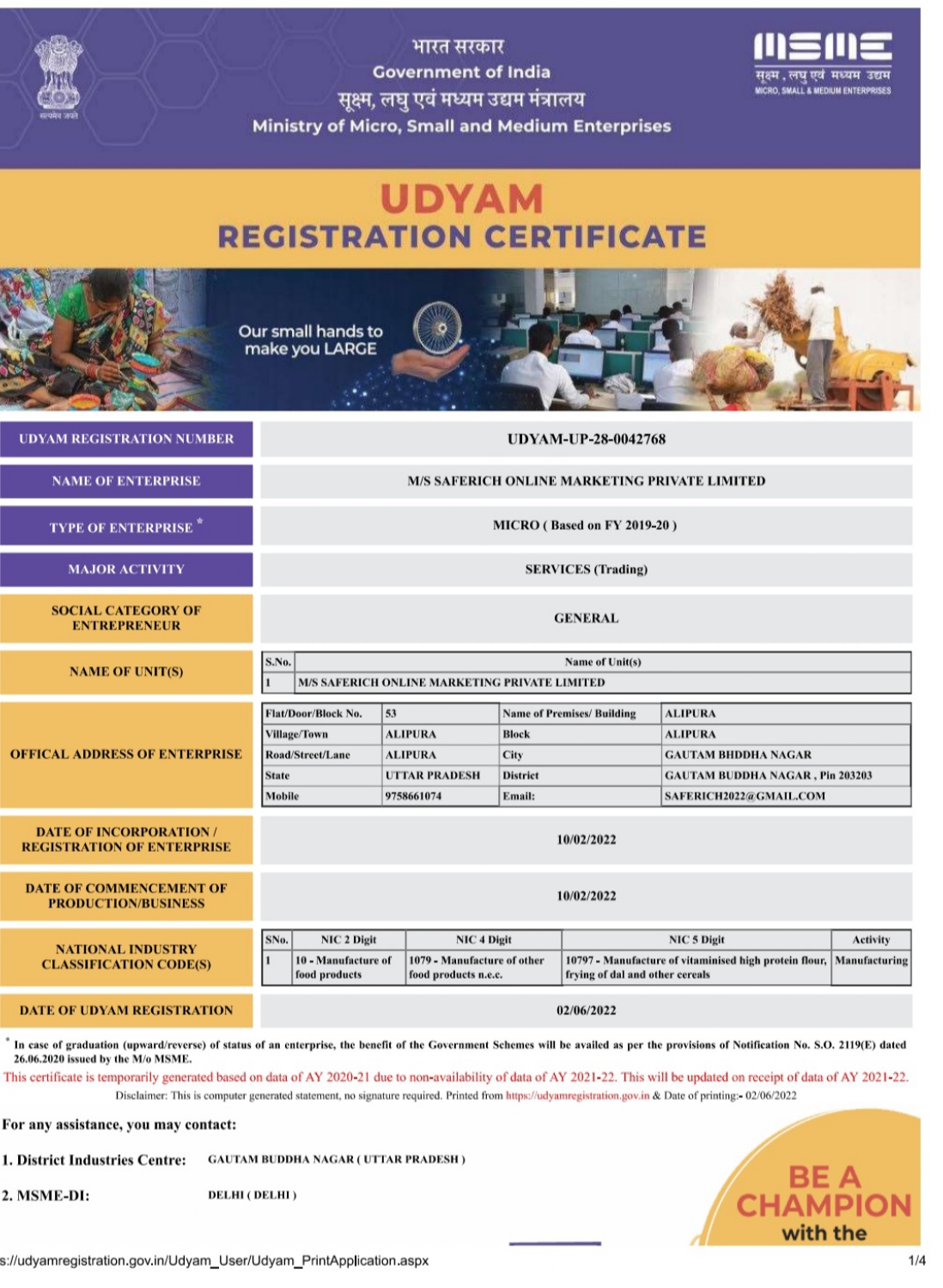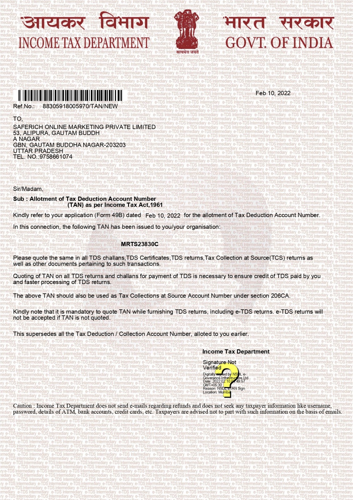Legal Certificate